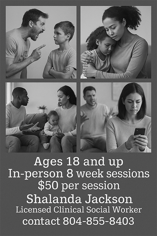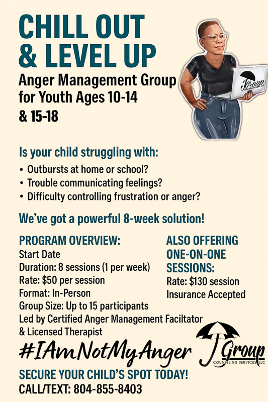 Anger Management Classes on Wednesdays at 6pm for adults and 6pm on Thursdays for teens.